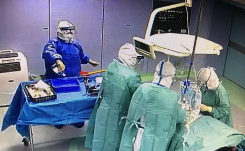 “一名封控区怀孕5个多月孕妇出现阴道流血症状,且胎动消失,情况十分危急!”医院急诊科接到电话后,立即通知产科值班医生,主治医师侯元双做好三级防护后对孕妇进行详细检查,判断病人出现了胎盘早剥,立即向党委委员、副院长、医务部主任吴剑波汇报,病人需要急症手术。吴剑波指示即刻启动应急预案,医务部与护理部共同顺利完成医护人力资源调配,安排产科、日间手术科、感染科的医护人员做好手术准备。此时产科副主任章丽、侯元双以及日间手术科主管护师路平、吴双艳,副主任医师马远忠已穿好防护服,随时准备实施手术,救治患者。