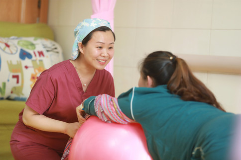 在产时服务上,助产士关口再次前移到产前参与查房,提前了解孕妈妈的基本情况,制定个案,进行一对一陪伴,借助拉玛泽呼吸法、分娩球、自由体位、墨西哥围巾、黄豆袋、中医元素、导乐仪等非药物镇痛,使孕妈妈得到放松,增加舒适度,缓解疼痛。产时耐心指导产妇均匀用力,使会阴充分扩张,适时控制胎头娩出的速度,减少人为干预,降低会阴撕裂伤,减轻产妇的痛苦,保护盆底组织,促进产程进展,从而达到自然分娩的目的。另一方面借助丈夫或家属陪伴,给予爱的力量,让准妈妈在呵护与爱的包围中顺利分娩,让准爸爸目睹和感受母亲的伟大和力量,同时帮助准爸爸进行角色改变,在产房创意开展“人生的第一次剪彩(剪脐带)”活动。