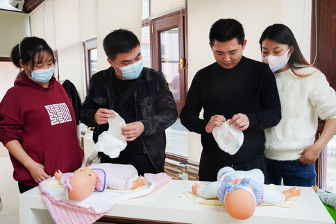 辛丑初冬,旭日暖阳。白云朵朵,随风飘摇。此时的济宁市任城区妇幼保健院“阳光房”显得格外温馨热闹,十几对准爸爸、准妈妈们如约而至,在任城妇幼医护人员的陪伴下,进行着一堂别开生面的“准爸爸大课堂”宣教和体验活动。
