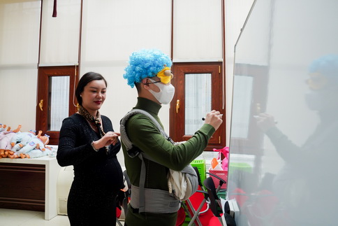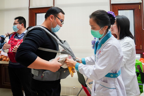 辛丑初冬,旭日暖阳。白云朵朵,随风飘摇。此时的济宁市任城区妇幼保健院“阳光房”显得格外温馨热闹,十几对准爸爸、准妈妈们如约而至,在任城妇幼医护人员的陪伴下,进行着一堂别开生面的“准爸爸大课堂”宣教和体验活动。