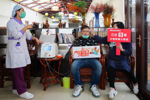 孕育之痛,很多人都有耳闻,十月怀胎一朝分娩,孕妈妈在宫缩中疼得撕心裂肺时,爸爸或许惊慌失措、或许手忙脚乱,或许心里嘀咕,生孩子真有这么痛么?这不,为了体验分娩疼痛,准爸爸们争先恐后、跃跃欲试加入挑战行列!挑战的准爸们在体验第一、二级时,基本没有过于应激的反应;可随着疼痛等级的增加,疼痛逐步加剧,他们脸上坦然的表情渐渐凝固,有的隐忍坚持、有的痛苦呻吟、有的甚至难忍放弃……准爸爸们的各种表情包层出不穷。分娩之痛的体验,再一次拉近了夫妻之间的情感,准爸爸更加体谅准妈妈的孕育和分娩的不易,同时科普知识的宣教,也让准爸爸们学习到了一些分娩和孕育知识,从而助力准妈妈安心怀孕、顺利分娩、科学育儿。